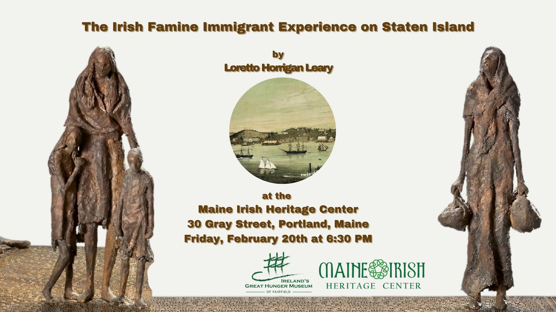Maine Irish Heritage Center 34 Gray St, Portland, ME, United StatesThe Irish Famine Immigrant Experience on Staten Island: A Lecture with Loretto Leary Friday, February 20th 6:30pm Doors open at 6:00pm In the wake of the Great Irish Famine, thousands […]